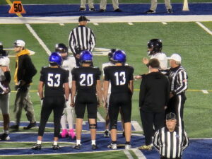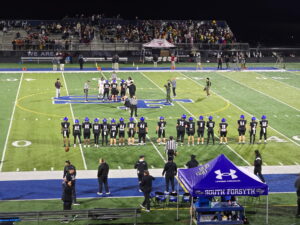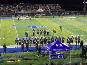 South Forsyth missed the Ga GHSA playoffs for the third straight season, the first under new HFC James Thomson llland his staff. The War Eagles were winless in Region 6, 6A. There is a lot of work to do, as encapsulated by Todd Spencer and Doug Thomas in the close. Unfortunatly, technical difficuties made it nearly impossible to get the opening audio of Doug’s Senior Night recognitions. The cleanest audio came just before halftime and included Todd’s 2nd half call. Just click along the audio timeline to move about. Some of the recognitions is eligible but you’ll have to search on your own. Many thanks to Brigitte and Todd Spencer for their extraordinary effort in light of Greg’s finger amputation. It just made it impossible to get into press boxes. Greg couldn’t hold on to anything. The next step is an angiogram this week. The fistula on the upper left arm is in good shape, but there may be some calcium blockage between the elbow and hand that is compromising blood flow and inhibiting healing. But the Goldenboy is intent on being able to get back to the call one way or another for the Spring Scrimmage, which may or may not be an intrasquad game. The new schedule will be constructed by Coach Thomson, so he could easily decide to play somebody else in May. He did tell us in an earlier Coaches Corner that he had never NOT had a spring game. So Stay Tuned. Many thanks also to my partner and new two-time grampa Doug Thomas, who both son and daughter have blessed him with next generation lads. Doug was in the box as many as three or four times a week, running the scoreboard for the middle school, Ninth Grade, JV and Varsity games. Thanks to Todd’s brothers Chuck and John for helping on the calls, and for the rest of the fam (includig the unrelated – wait who says she’s not related – Aunt Amy – first one in, last one out) and the rest of our fabulous fan base; and finally to the South Forsyth Touchdown Club for their tremendous support. Now if we can all put our heads together and figure out how to get bigger as a squad so we’ll quit getting pushed around. It’s hard to keep guys off your QB when they outweigh you by fifty pounds across the line. Have a great Holidays and keep your eyes peeled for who can provide those Grow Pills over the next few months, or how we can get some beef to enroll at South. Everybody else is doing it. I’m pretty sure Doug and Coach Thomson will do a Coaches Corner interview mid week Be on the lookout